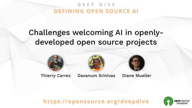 In this webinar hosted by the Open Source Initiative as a part of the “Deep Dive: Defining Open Source AI” series, a panel of open source community leaders, including Thierry Carrez, Diane Mueller, and Dims Srinivasi, explores the challenges and implications of integrating AI into open source projects. They discuss the impact of AI on the four facets of open collaboration: open source, open development, open design, and open community. The panelists express concerns about the potential influx of AI-generated contributions, putting added pressure on project reviewers and maintainers. They highlight the need for transparency, ethics, and governance in handling AI-generated code, emphasizing the importance of credit, consent, and compensation for creators. The discussion also touches on the potential benefits of AI in automating code generation, bug detection, and even collaborative design processes while raising questions about biases in AI-generated content. Ultimately, the panel envisions a future where AI plays a significant role in open source, but ethical and governance challenges need to be addressed.